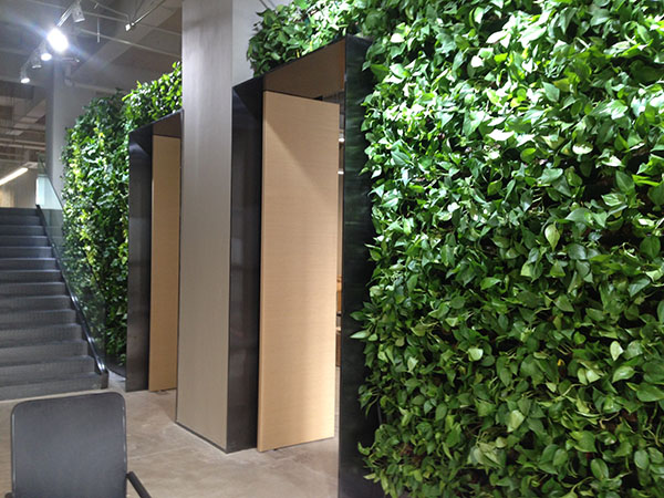 在办公室里面设置基面的植物墙,上面种一些评论的植物或者花草就能为缓解增添色彩。起到美化办公环境的作用。当然,办公室环境质量提高了,员工们工作的效率也会得到很大的提升,特别是现在电脑办公化的时代。大部分员工都会因为长时间面对电脑产生视觉疲劳。这时候办公室里面植物墙就起到了很好的调解员工视觉的作用。