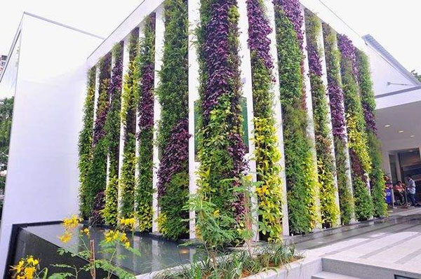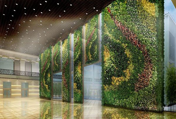 垂直绿化使人们得以构建更接近大自然的生活环境,将大自然风景引入繁杂的城市,使人造结构与自然风景完美结合,以柔和的自然曲线为设计风格,配植色彩丰富的植物,使其高低错落,交通变换,能够非常完美地将垂直绿化植物墙融合在建筑及装修设计中,并使之拥有与众不同的美感和让人赏心悦目的最终整体效果。